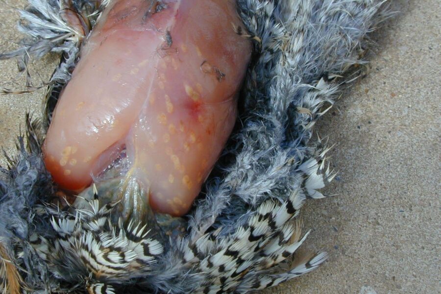 by Dana Wright Every year we have people send us pictures of quail breasts with these spots on them wanting to know what they are, they are commonly referred to as "rice breast". The spots are lesions caused by parasitic worms that are a Physaloptera spp.. The quail becomes infected…