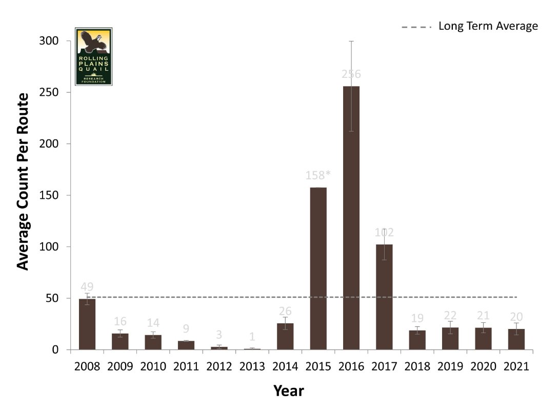 Last month we conducted our annual roadside counts at RPQRR. The survey consists of 4 observers counting all quail seen along a 19.2 mile transect. The transect is broken into 2 routes, where one is conducted in the morning and the other in the evening (and then flipped) and replicated 4 times. The data indicate similar abundance to the last 3 years.